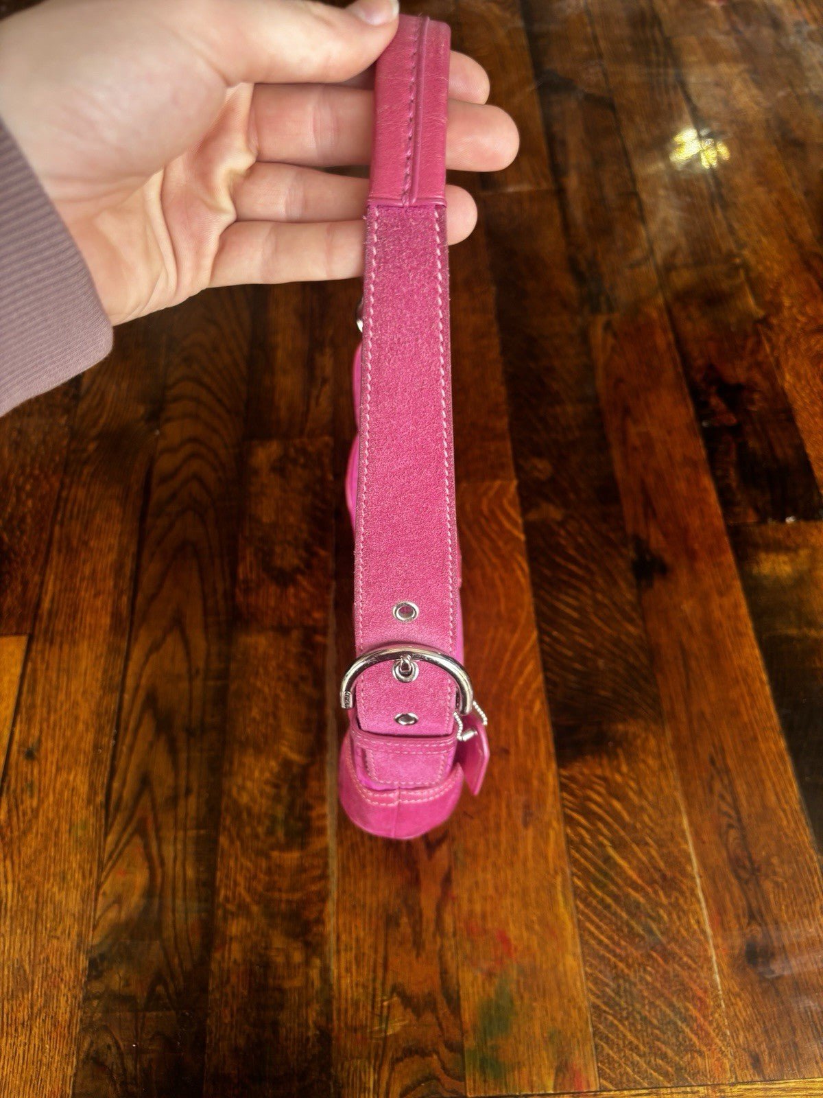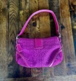 Elevate your accessory collection with the Y2K Vintage Coach 2004’s Soho Signature Shoulder Bag. Crafted from durable canvas material, this mini shoulder bag boasts a chic hot pink exterior, complemented by a sophisticated silver hardware finish. The iconic Coach logo pattern adds a touch of class.